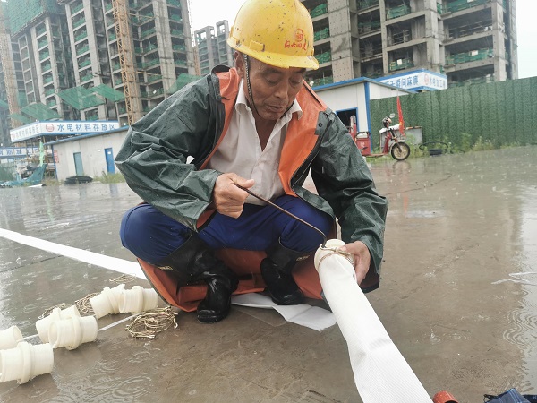 五分公司禹州海盛湖滨豪庭项目同舟共济应对强降雨